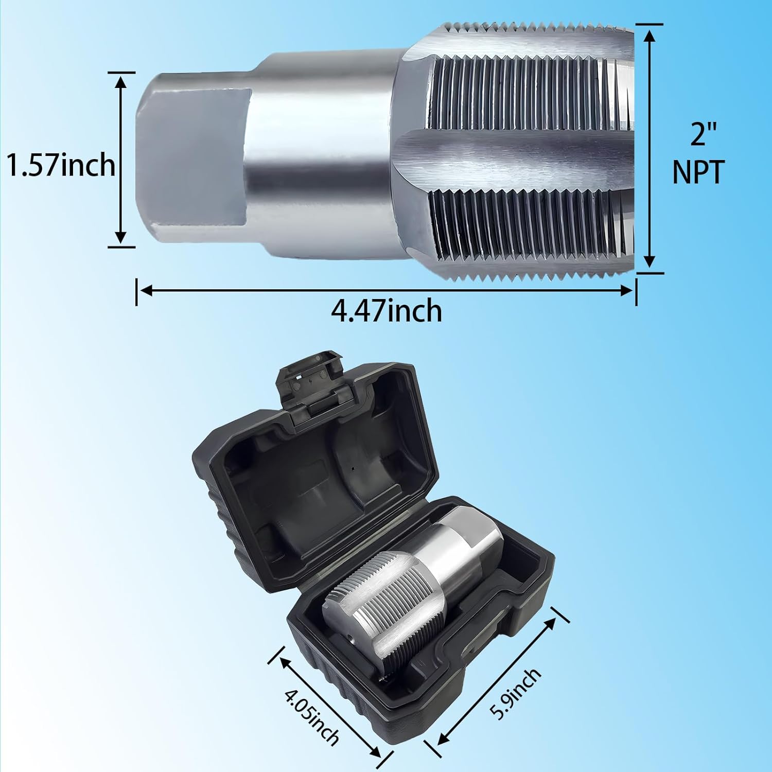 Introducing our NPT Tap Set -National Pipe Taper (NPT) taps, a comprehensive solution for your pipe threading needs, ideal tools for cleaning or re-threading jammed or damaged pipes.This Standard pipe tapping set includes common tap sizes 2"allowing you to tackle a wide range of projects with ease.The nominal size of the National Pipe Taper taps corresponds to the size of the pipes fitting to be tapped.Itis not the actual dimension of the Taps.Features:Crafted from durable heat-treated and tempered carbon steel, this NPT tap set is built to withstand rigorous use and provide exceptional performance. Their base material does not have any additional coatings, ensuring reliable and consistent results.The NPT taps come neatly packed ina sleek plastic case.This not only keeps them protected from rust but also allows for easy storage and quick access when you need any pipe threading tools.With their right-hand cutting type, round shank, square end, and 4 straight flutes, these NPT taps are engineered for precise and efficient pipe threading.Whether you're working on plumbing installations, automotive repairs, or construction projects, these taps will deliver excellent results.They could be perfect for either handy Plumbing repair tools as DIY plumbing or Professional plumbing equipment,or Hand threading Machinist tap set.The NPT thread design offers tapered form that creates a solid and leak-free connection between pipes and fittings.This ensures reliable performance and reduces the risk of costly leaks or setbacks.For its versatile size range,durable carbon steel construction, convenient storage case, efficient cutting design, and reliable performance, it will be your go-to solution for professional threading applications.
